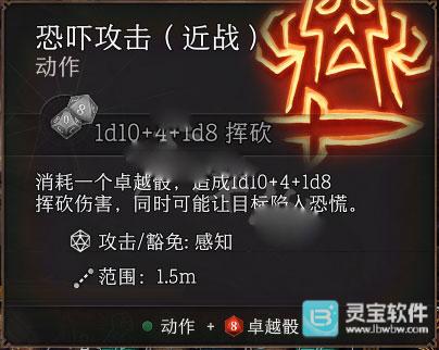 消耗一个卓越骰,攻击附加1d8和一回合的恐慌,遗憾的是由于当前版本限定4级DC最高只有13,这个DEBUFF很容易被豁免。战士主要是近战攻击的原因,很容易忘记远程也可以触发,必要时可以赌一箭触发恐惧,来救平时救不到的场。