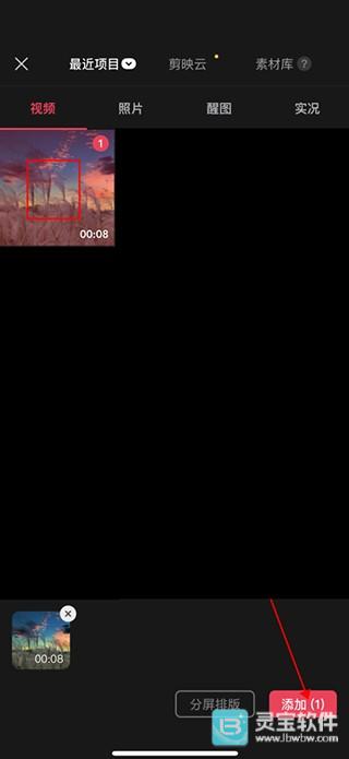 2、进入到本地相册页面,选择一个需要识别字幕的视频,再点击右下角的“添加”按钮;